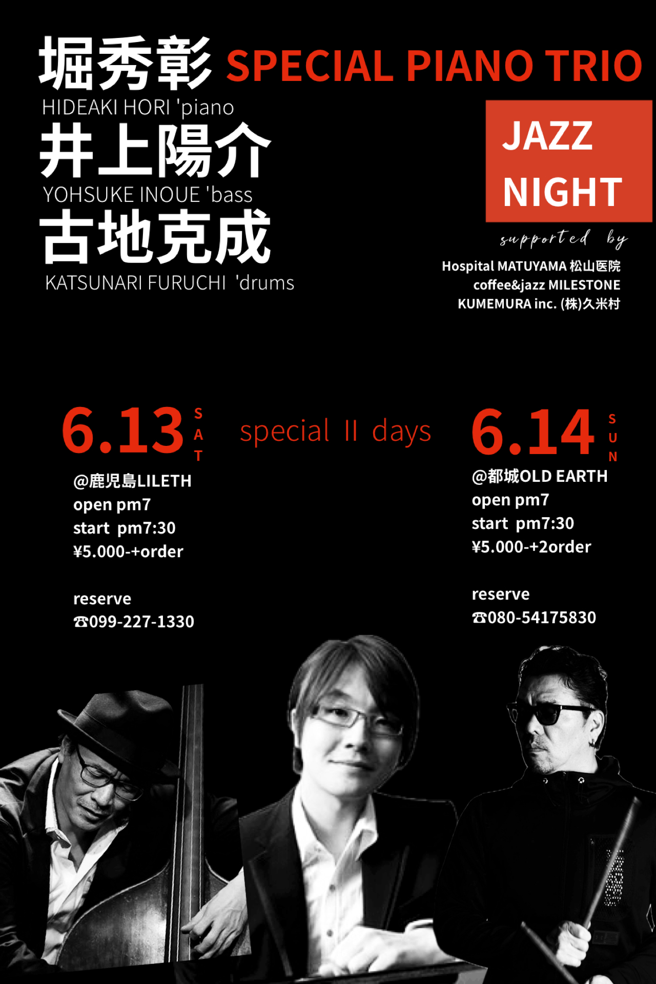 • 2026 6.13(Sat)@鹿児島Lileth 出演 堀秀彰(pf)SPECIAL PIANO TRIO 井上陽介(db)古地克成(ds)