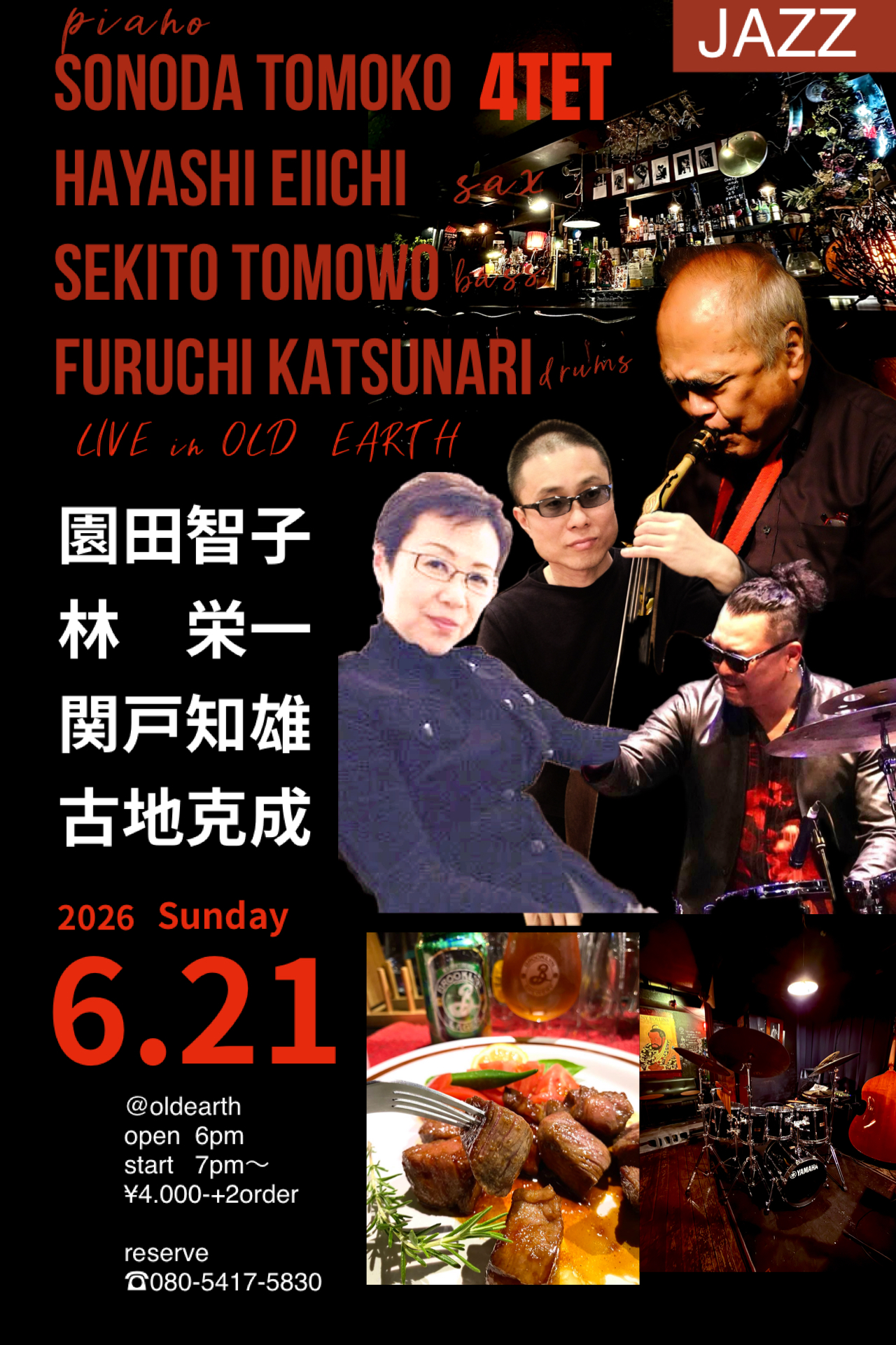 2026 6.21(sun)@ 都城OLD EARTH 出演 園田智子(pf)4TET 林栄一(sax)関戸知雄(db)古地克成(ds) 2026年6月21日 投稿先 未分類 ← 過去の投稿へ 次の投稿へ →