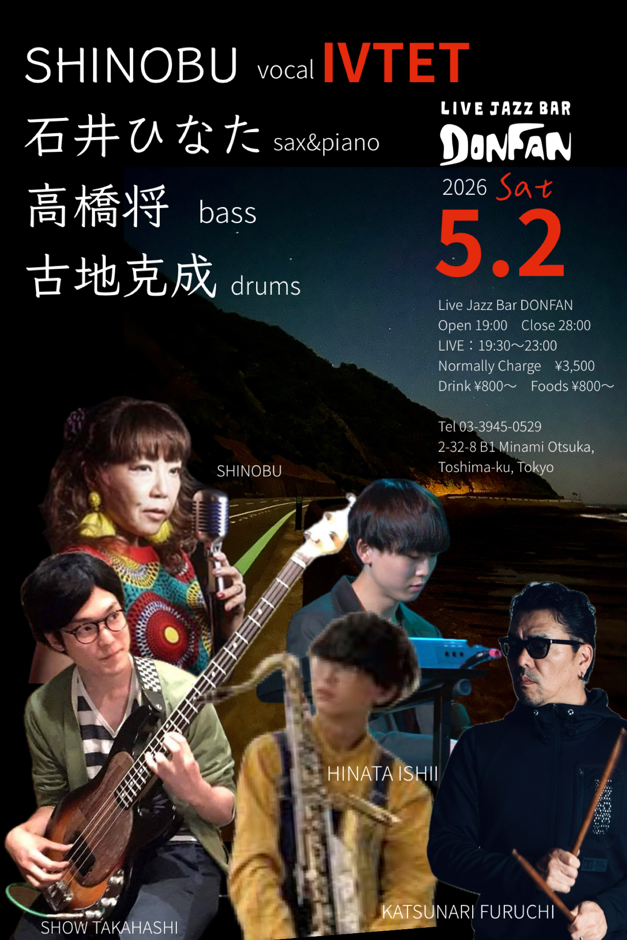 2026 5.2 sat @大塚DONFAN 出演 SHINOBU(vo)石井ひなた(pf.sax)高橋将(eb)古地克成(ds)