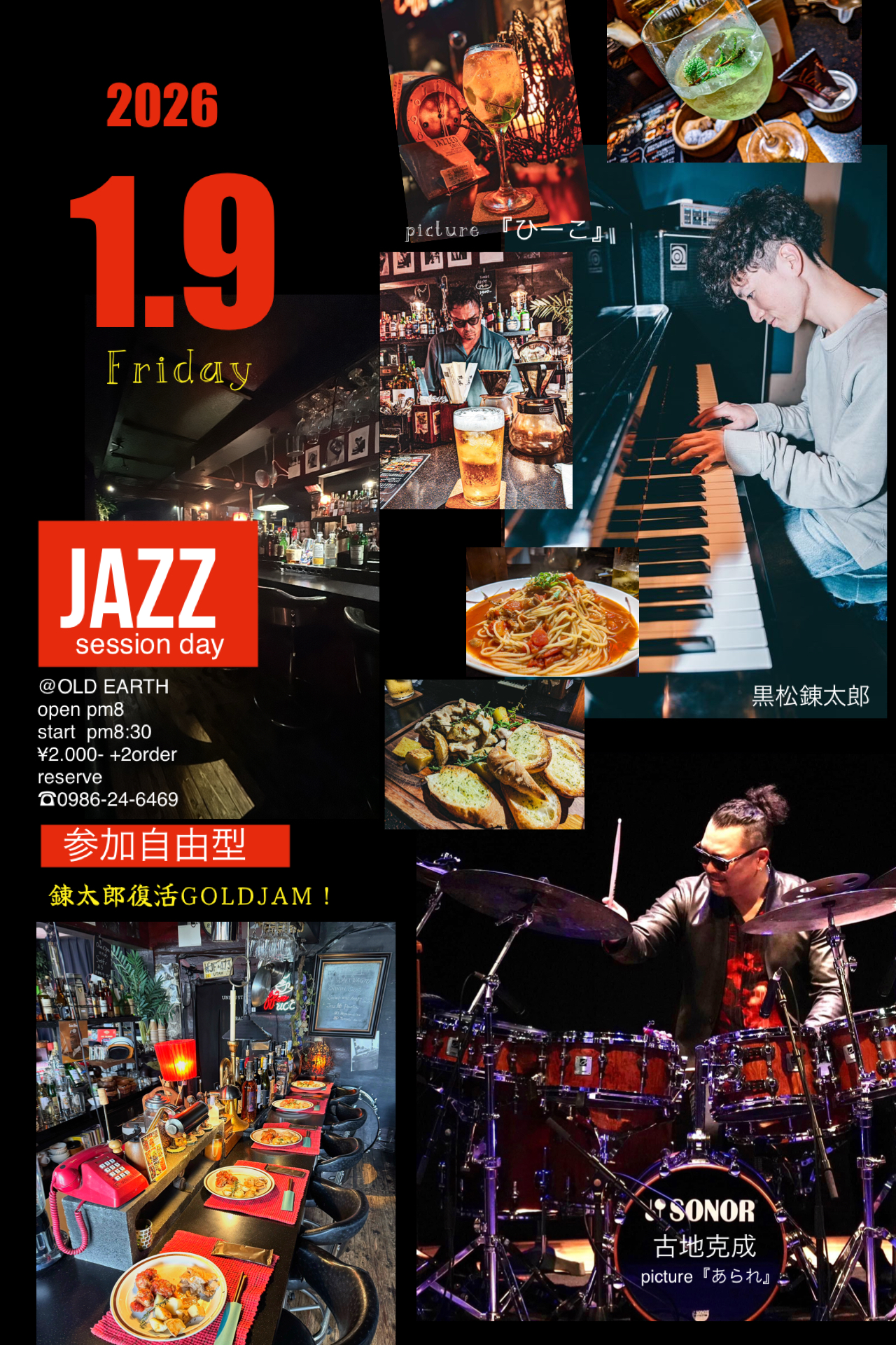 2026 1.9(FRI)@OLD EARTH 出演 古地克成(ds)黒松錬太郎(pf)gold jam sess